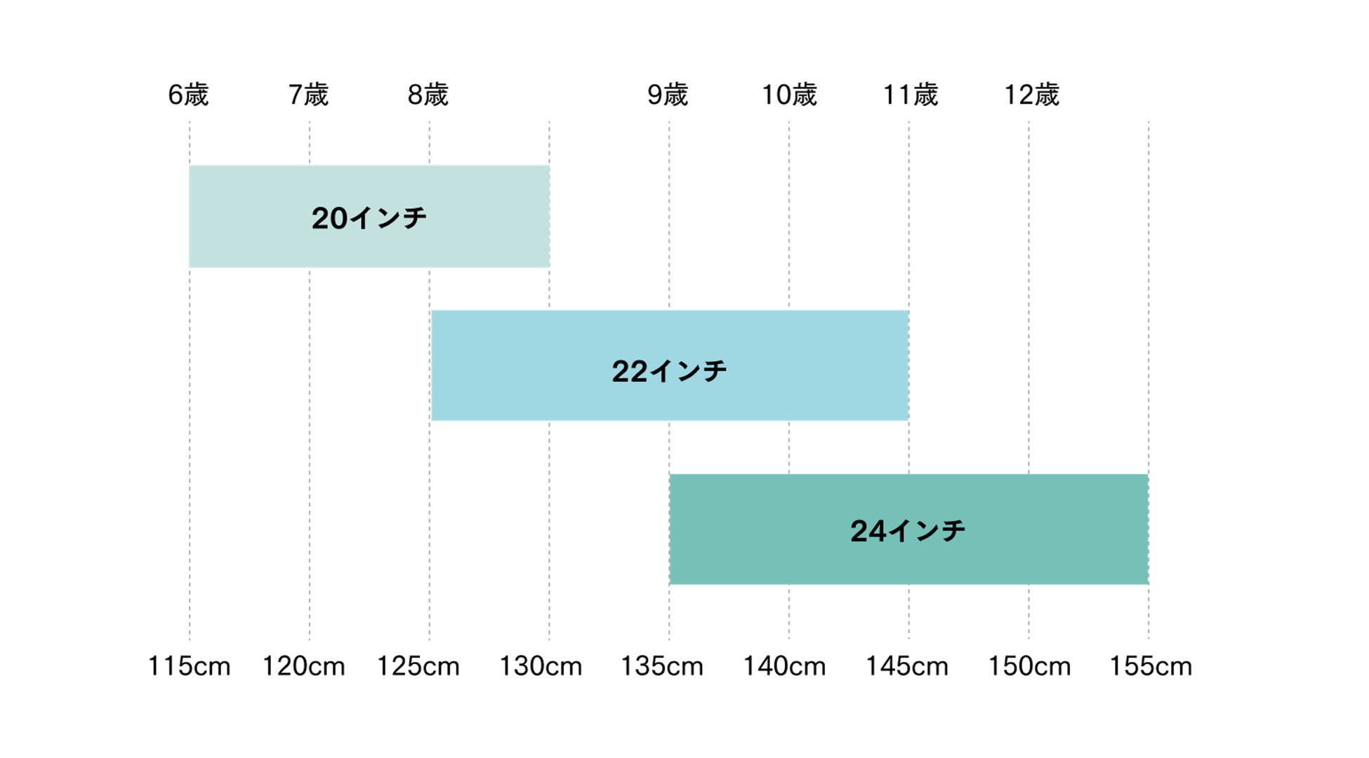 お子さまの成長にあわせて選べる、20インチ / 22インチ / 24インチ のラインアップへ