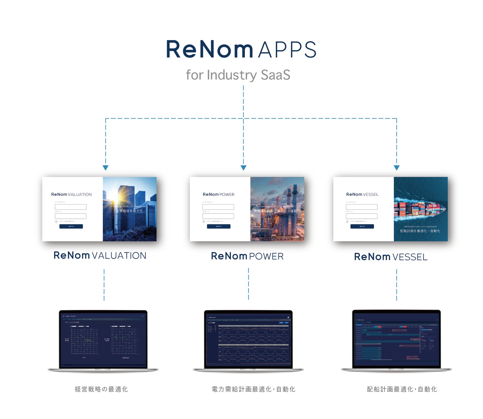 「ReNom Apps」は電力・海運・サプライチェーン3分野のオペレーション最適化を実現する社会インフラ特化型SaaSです。