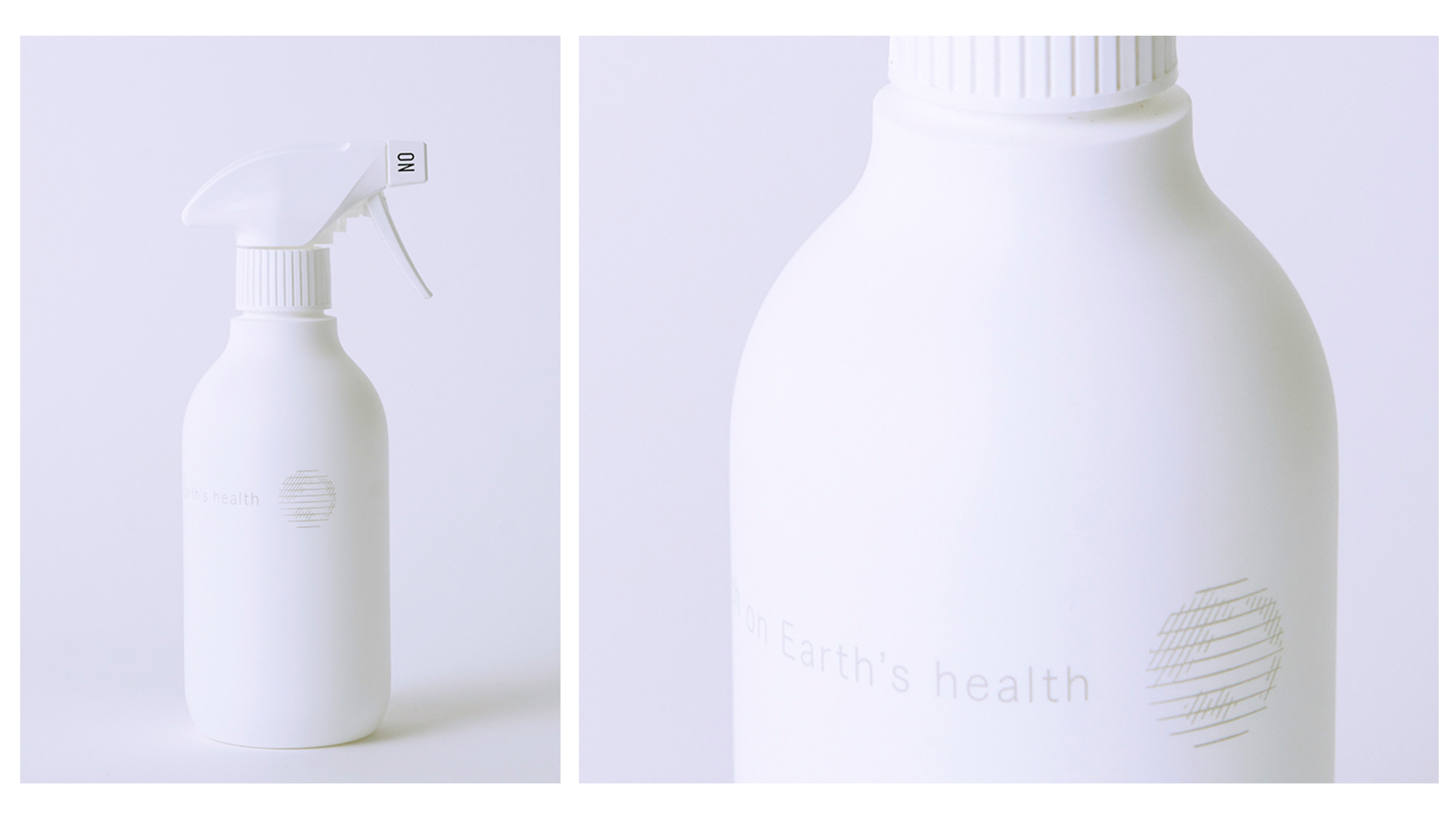 ボトルに書かれた文字は私たちのコーポレートスローガン「地球の健康を見つめる」を意味する、”Keeping a close watch on Earth’s health”