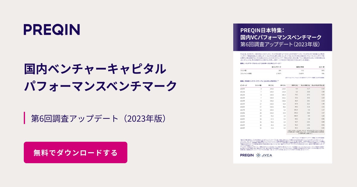 ”The Home of Alternatives”をコンセプトに、オルタナティブ投資の包括的なデータを提供するPreqin合同会社(以下プレキン)は、一般社団法人日本ベンチャーキャピタル協会(以下JVCA)と共同で、第6回パフォーマンスベンチマーク調査結果を公開しました。