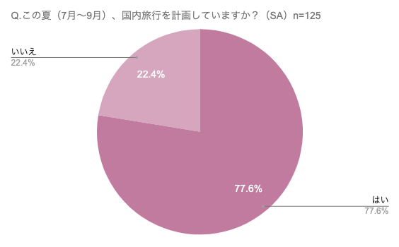 - この夏(7〜9月)、20〜59歳の女性の約78%が国内旅行に、約24%が海外旅行に行くと回答。8割以上が、家族やパートナー、友人など「複数人」で旅行をする傾向。