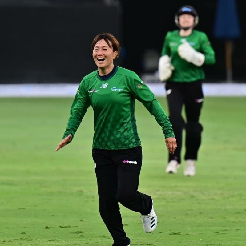 Spiritは先攻のバッティングで、イングランド代表のSophia Dunkley選手(51ラン)などの活躍で147ラン獲得しました。後攻のFalconsは、スリランカ代表のChamari Athapaththu選手(42ラン)などの活躍で逆転を狙いましたが、守るSpiritのSophie Ecclestone選手(イングランド代表)がAthapaththu選手をアウトにすると、宮地選手が4つのアウトを奪い、Falconsを120ランに抑えました。1試合で4つの奪アウト数は、試合終了時点で今大会最高記録。