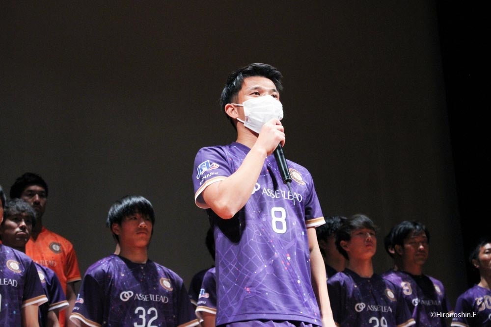 「昨シーズンは本当に応援ありがとうございました。新宿の街の皆様が毅然とコロナに立ち向かっているから、パートナーの皆様のロゴが入っているから、会場に足を運んでパワーを送ってくれたから、奮い立って闘い抜くことができました。今年の目標は、JFLで優勝してJ3に昇格することです。その過程が過酷であることは分かっているつもりですが、みんなでやると決めました。どうぞ、ご支援ご声援をよろしくお願いいたします。」