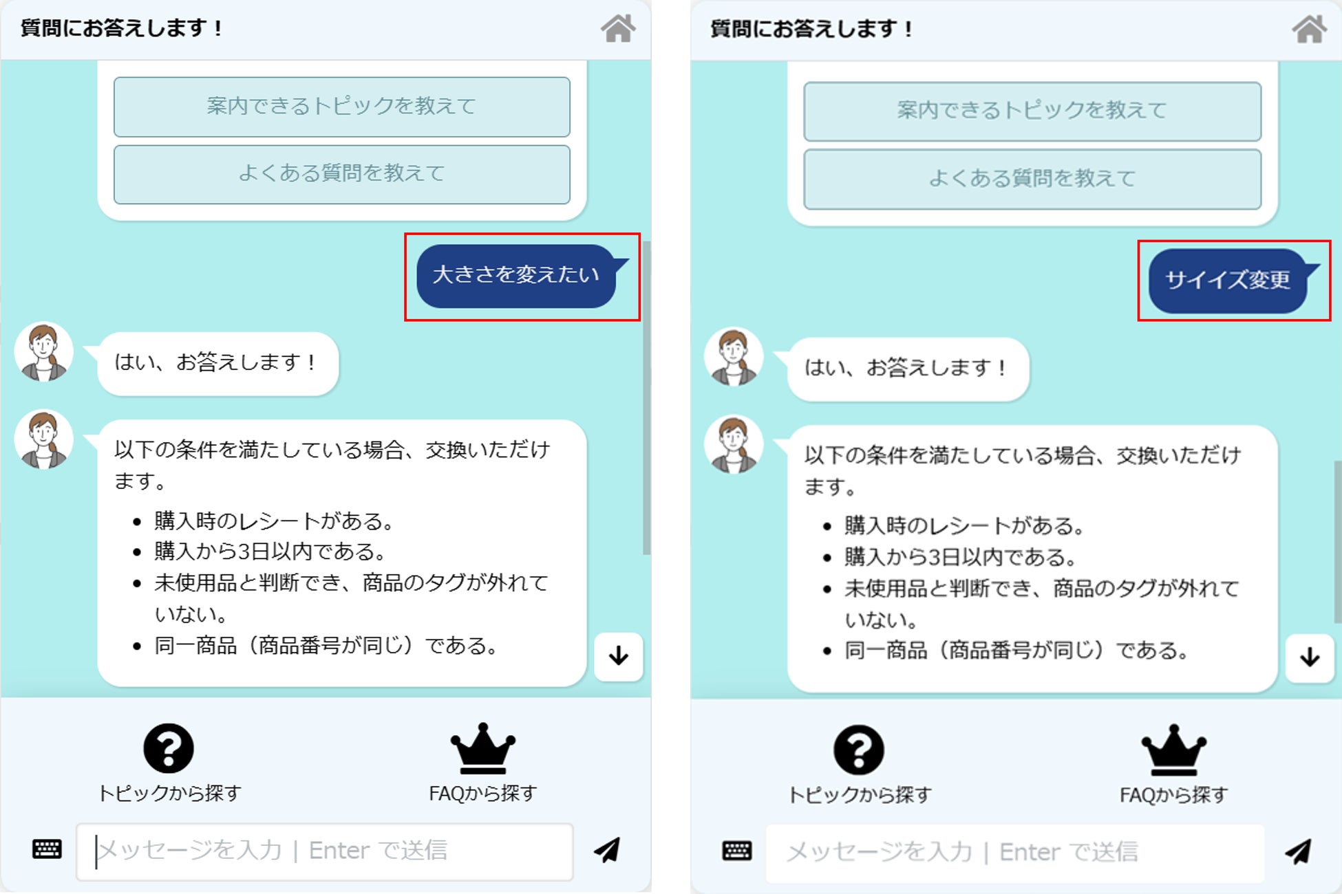 これにより、質問のゆらぎや入力精度に左右されない、より自然でスムーズなチャットボットとの会話が可能になります。