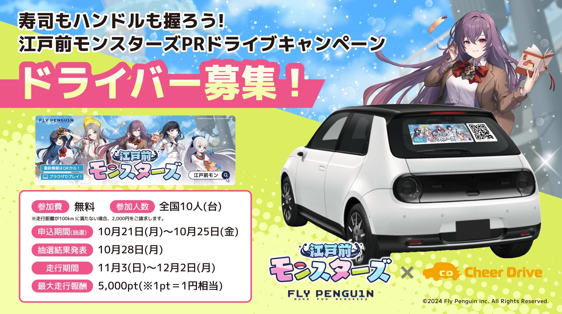 「寿司もハンドルも握ろう!江⼾前モンスターズPRドライブキャンペーン」