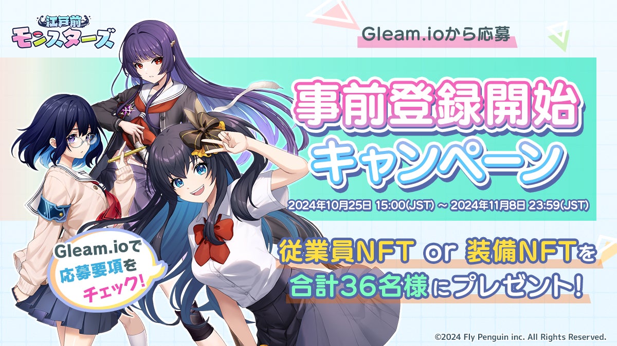 各種アプリ開発やITアウトソーシングを手掛けるCLINKS株式会社(本社:東京都中央区、代表取締役:河原浩介)とスマートフォンアプリゲームの企画・開発・運営を行う株式会社フライペンギン(本社:東京都中央区、代表取締役:河原浩介)は、ブロックチェーンゲーム「江戸前モンスターズ」の事前登録を2024年10月25日15時(JST)より開始することを発表いたしました。