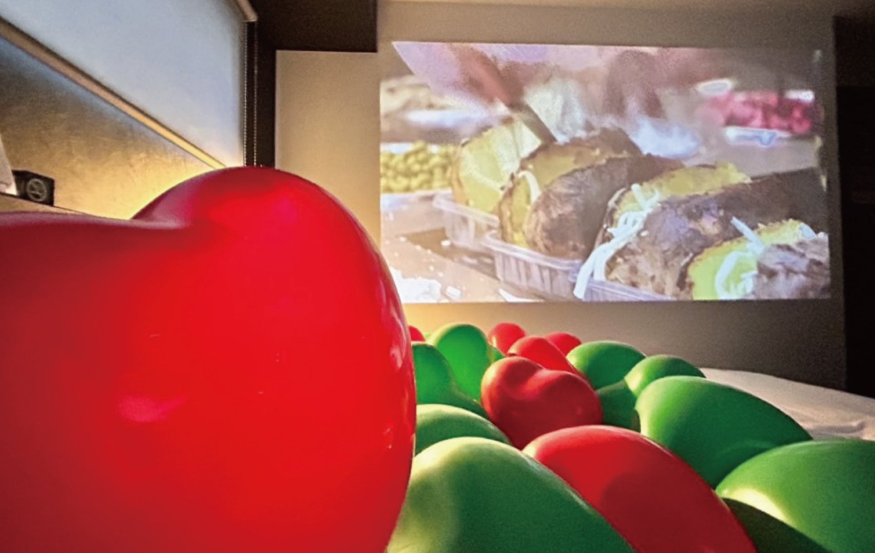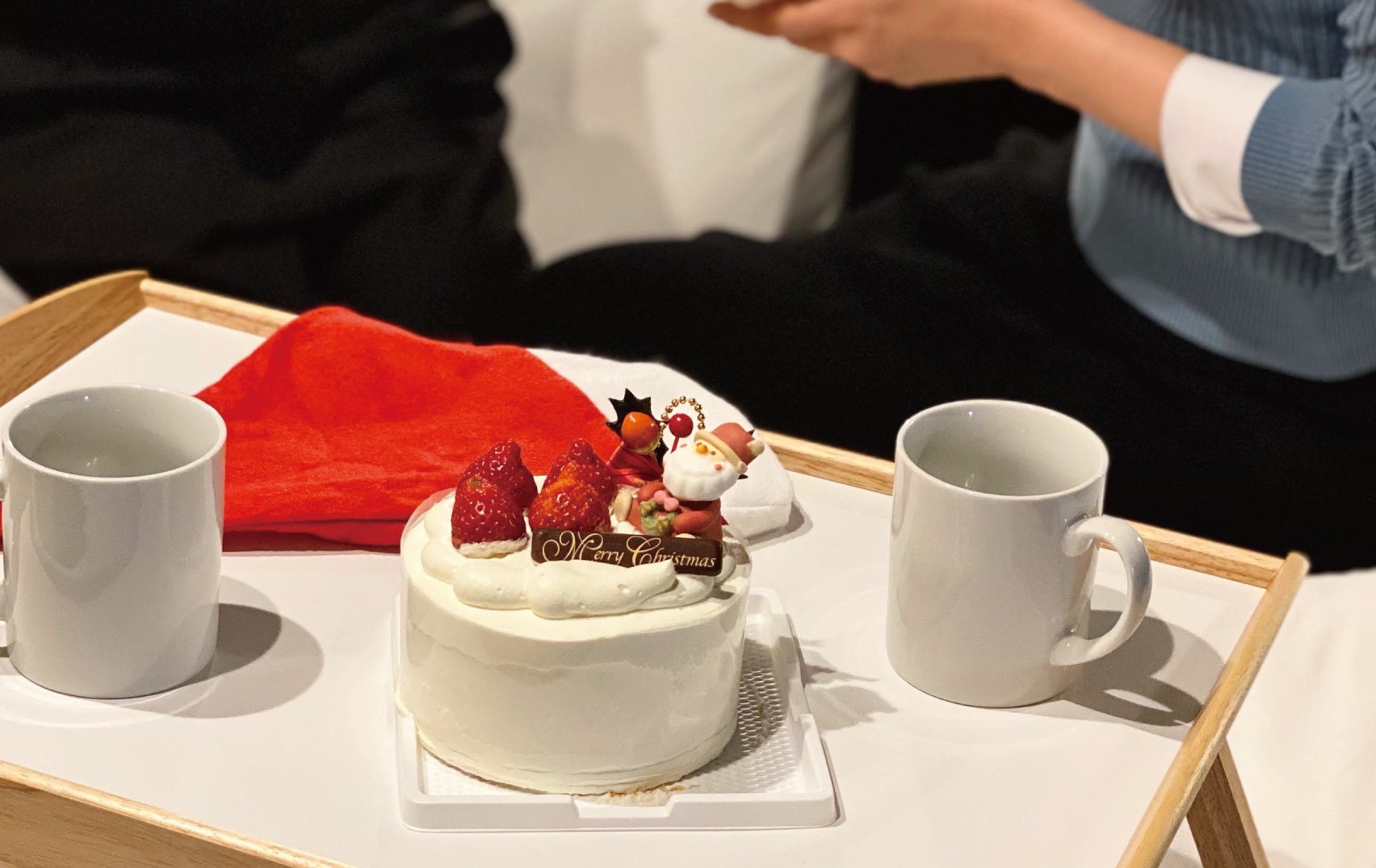 プランには小型の高性能プロジェクターのレンタルが含まれているので、クリスマスにまつわる映画や映像を流したり、お好きなアーティストやアイドルのライブ映像鑑賞などもおススメ。デリバリーやテイクアウトした物も部屋に持ち込めるので、ベッドトレイに並べてちょっとしたパーティーが楽しめます。