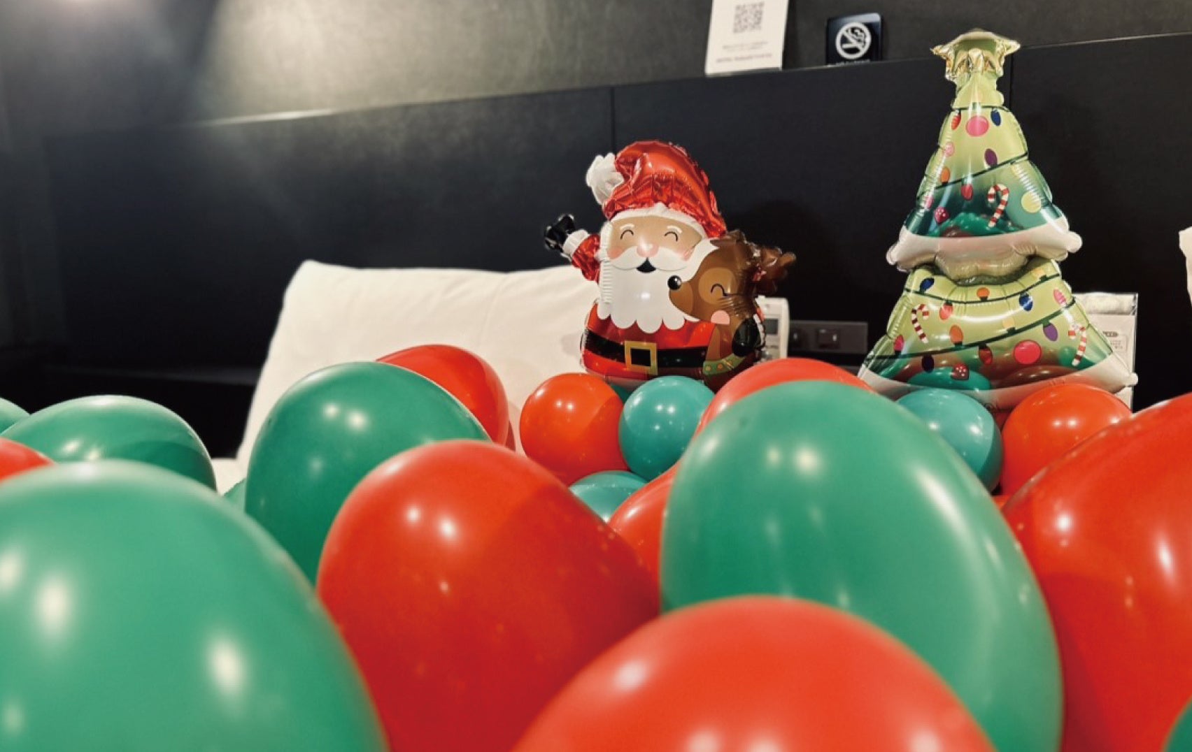 お部屋に入るとクリスマス仕様のバルーンでいっぱいの部屋が広がります。準備は不要ですので、荷物が嵩張らないのも嬉しいポイント。飾り付けが苦手な方も安心です。2人で思いっきりはしゃいで、どうぞ“特別”な1枚を残してくださいね。