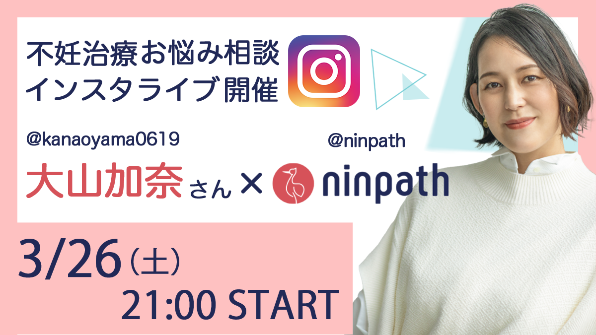 不妊治療可視化アプリ「ninpath」を運営する株式会社ninpath(本社:東京都港区、代表取締役CEO:神田大輔)は、ninpath公式アンバサダーであり不妊治療経験者の大山加奈さんとともに「不妊治療中のメンタル等のお悩み」をテーマに、2022年3月26日(土)21時よりインスタライブを開催いたします。