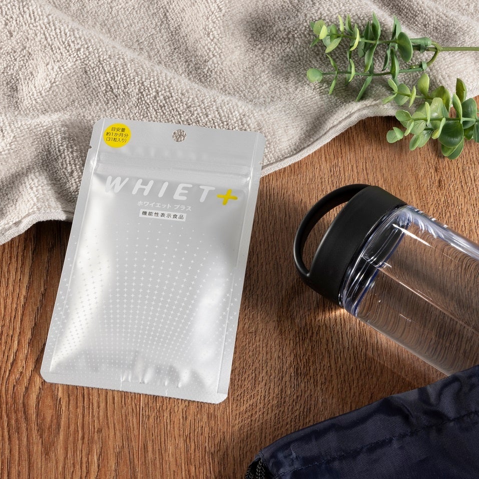 本セットは、贈り物としても人気の「アイムプロテイン」に、さらに今だけ限定で、紫外線対策と体脂肪対策が同時にできる機能性表示食品「ホワイエット+(プラス)」1袋を特典としてプレゼントいたします。