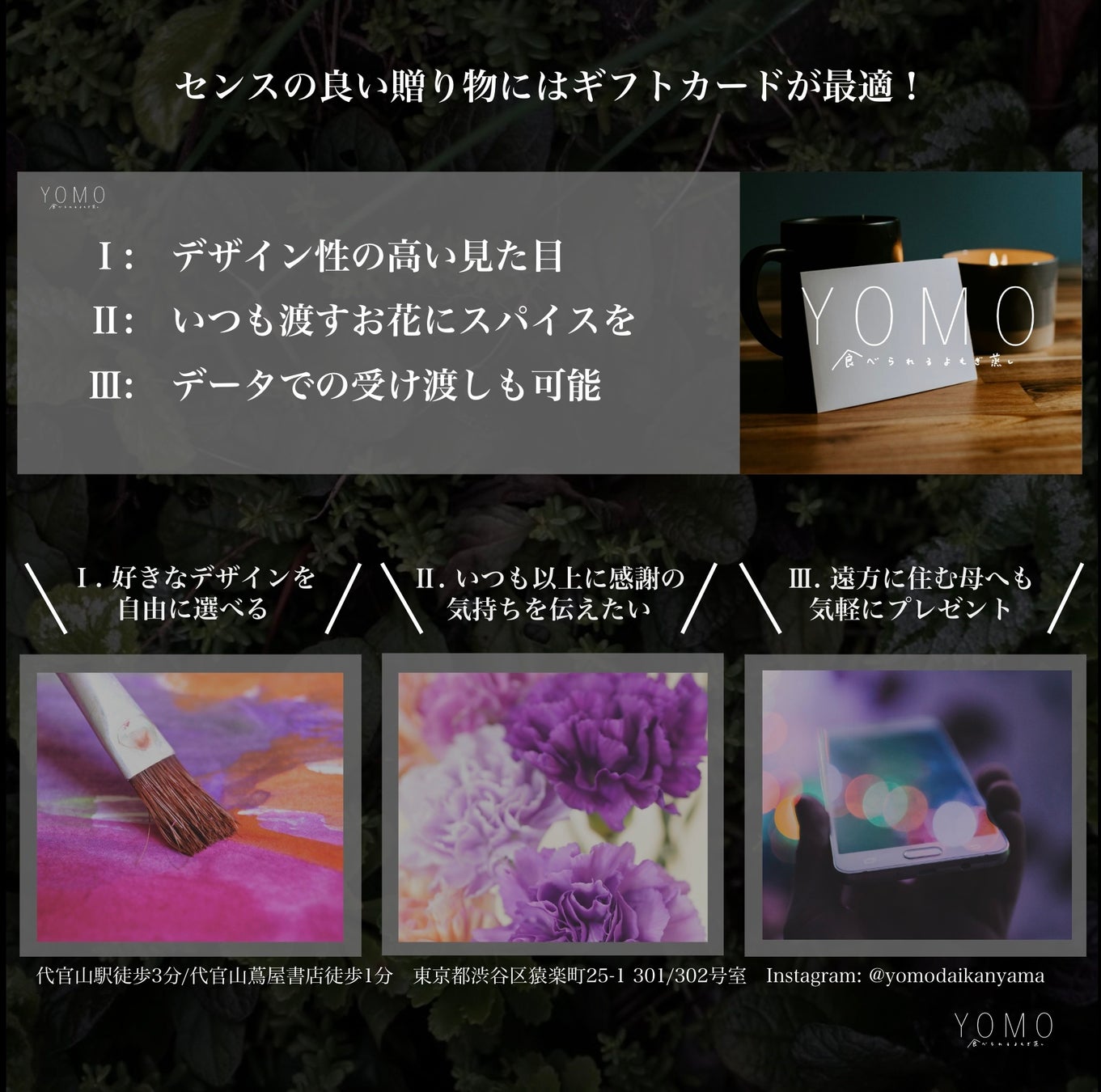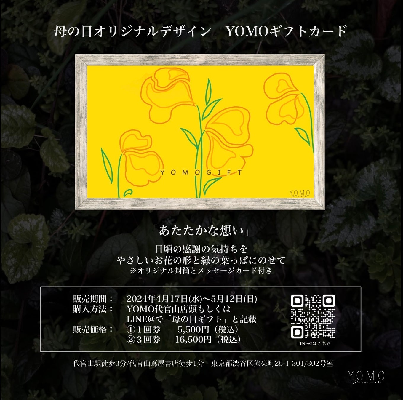 購入方法 YOMO代官山店頭もしくはLINE@で「母の日ギフト」と記載