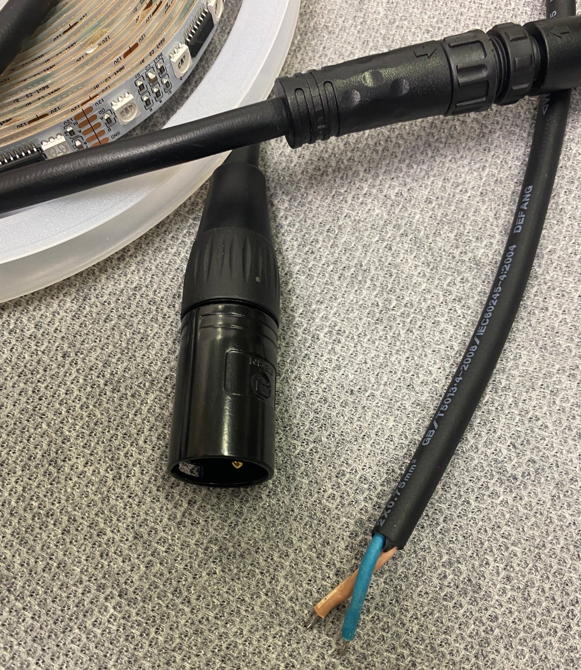 テープの先端は、DMX端子(3Pin)と電源12Vとなっています。