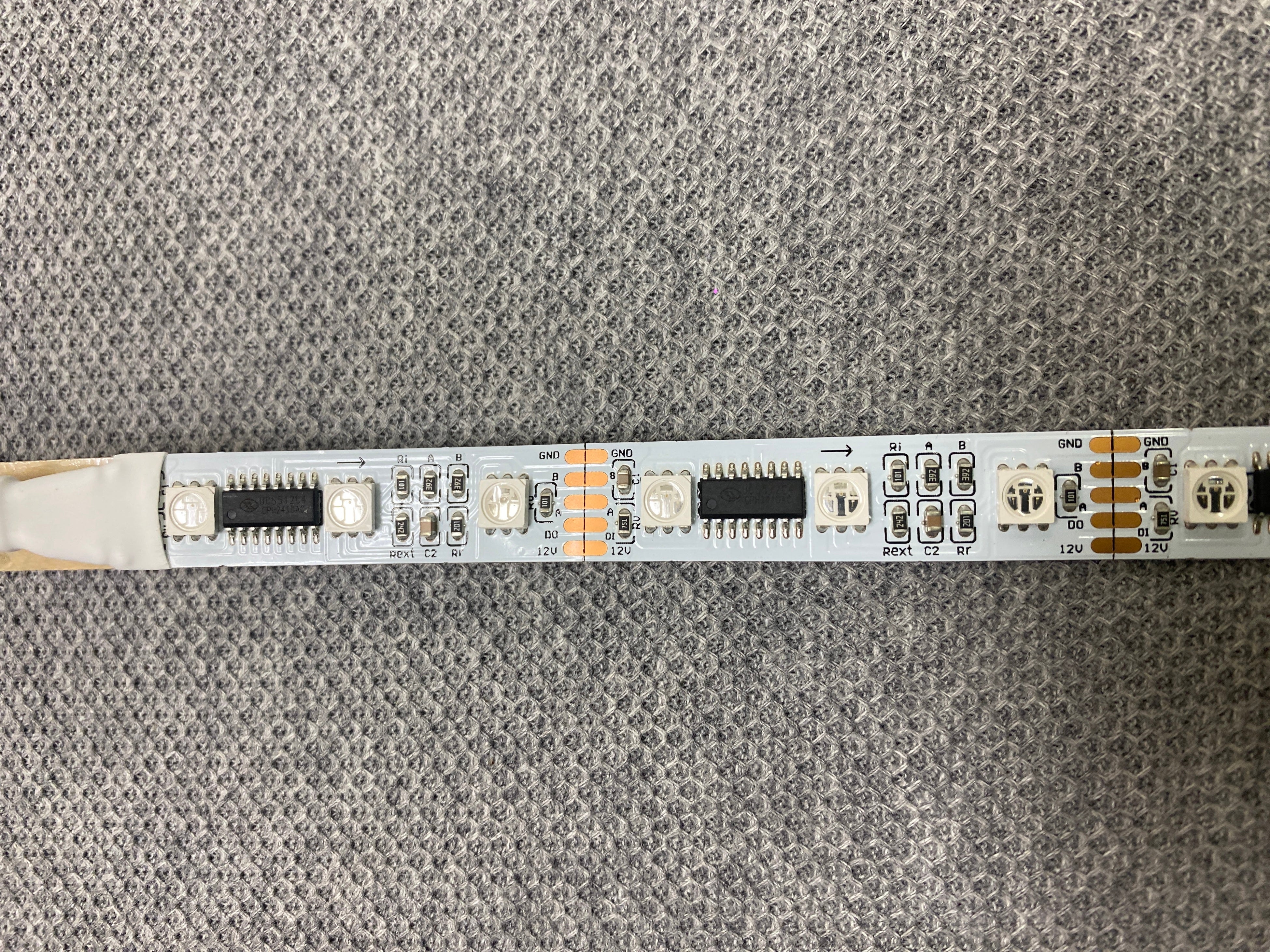 DMX信号対応のLEDストリップテープです。3個のLEDで1ドットを構成します。