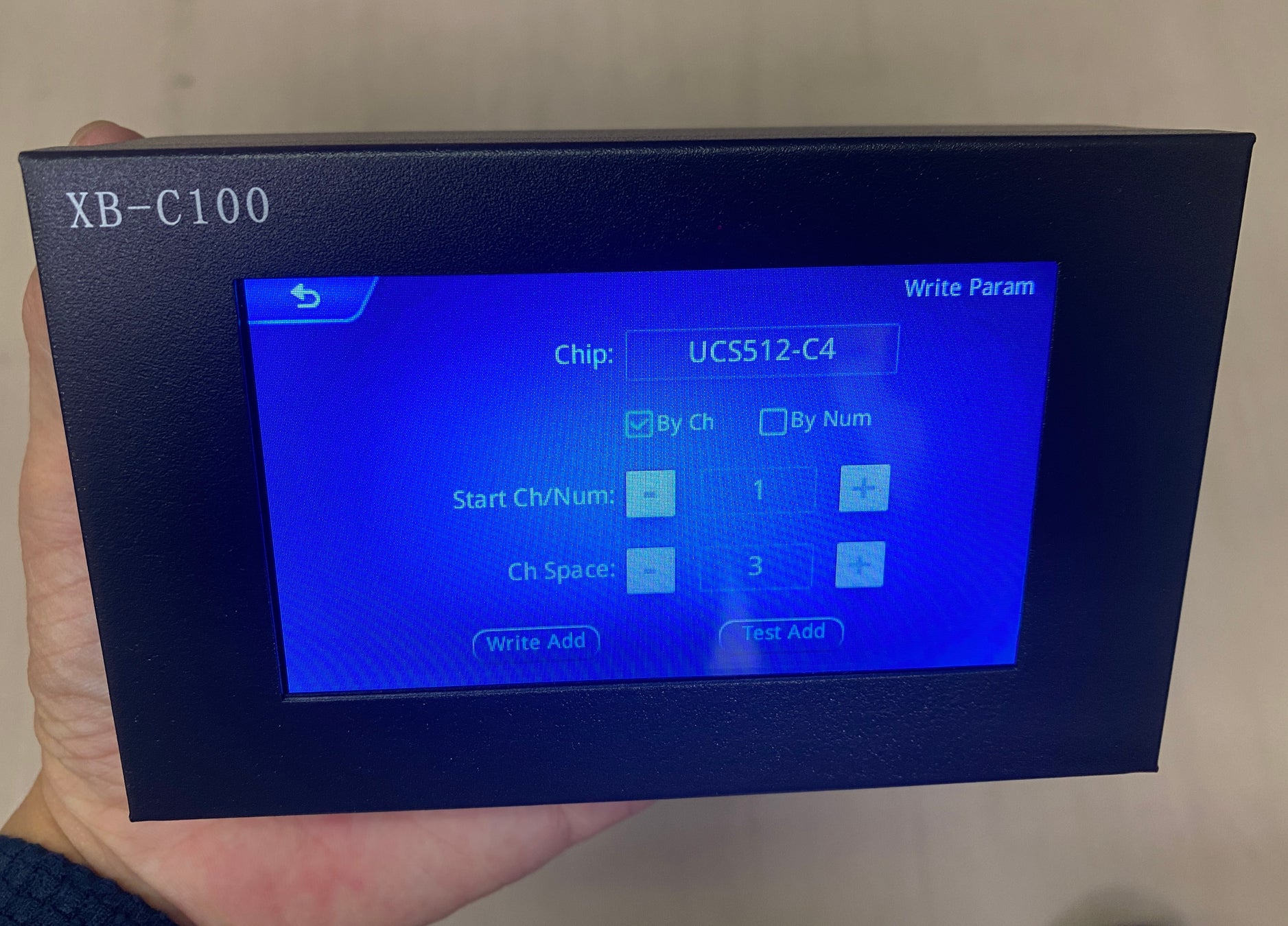 オプションのDMXアドレスライターを使うことで、スタートアドレスなど設定が可能です。