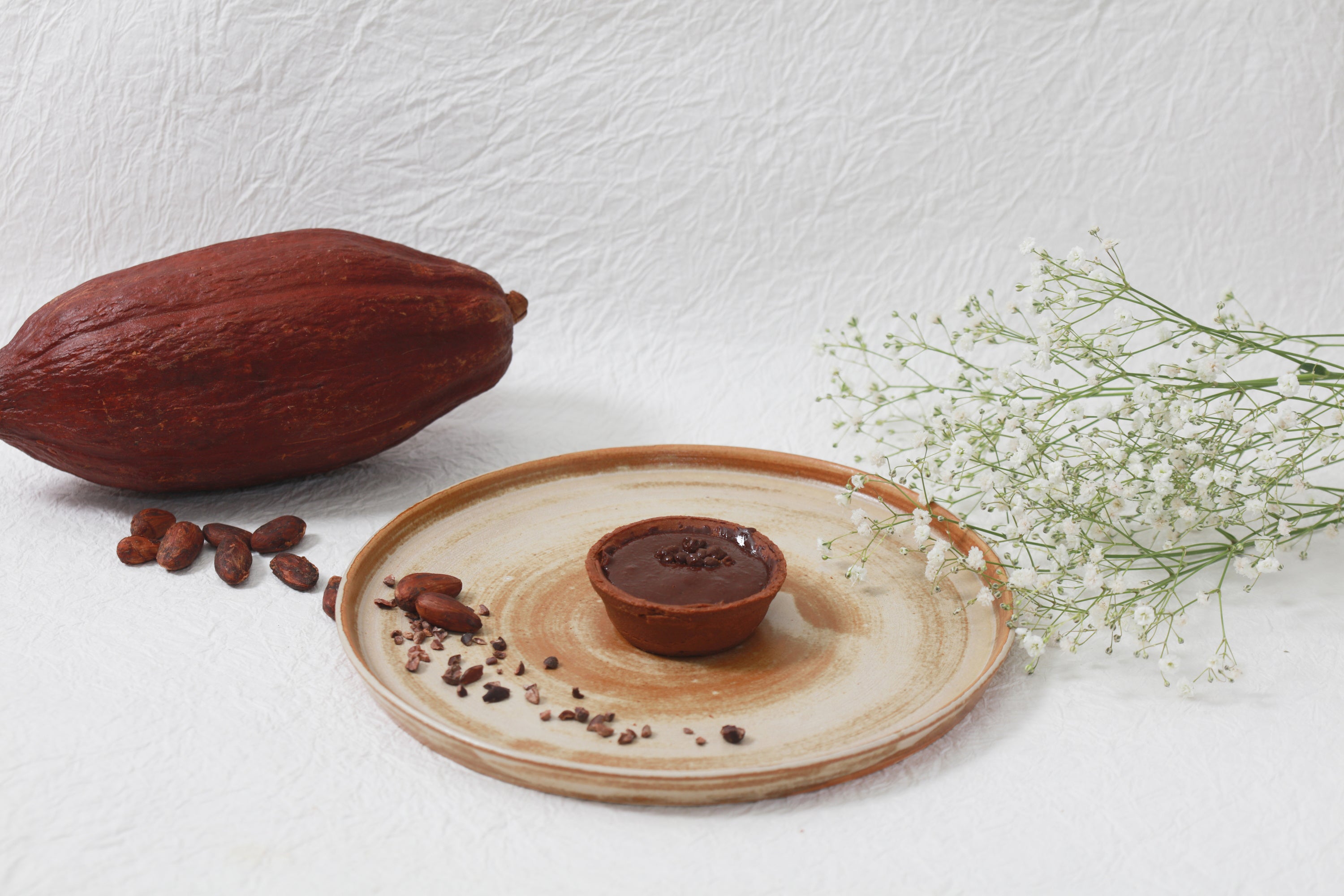 ココア入りのタルトカップにカカオニブチョコを敷き詰め、挽きたてのカカオペーストと生クリームを合わせたガナッシュをカップいっぱいに入れたら、カカオニブチョコをトッピングして完成です。挽きたてのカカオペーストを使用することで、チョコレートの濃厚さがありながらも後味はさっぱりと仕上がりました。カカオのフレッシュな風味とカカオニブチョコのポリポリとした食感、タルトのサクサクした食感をお楽しみいただける商品となっています。