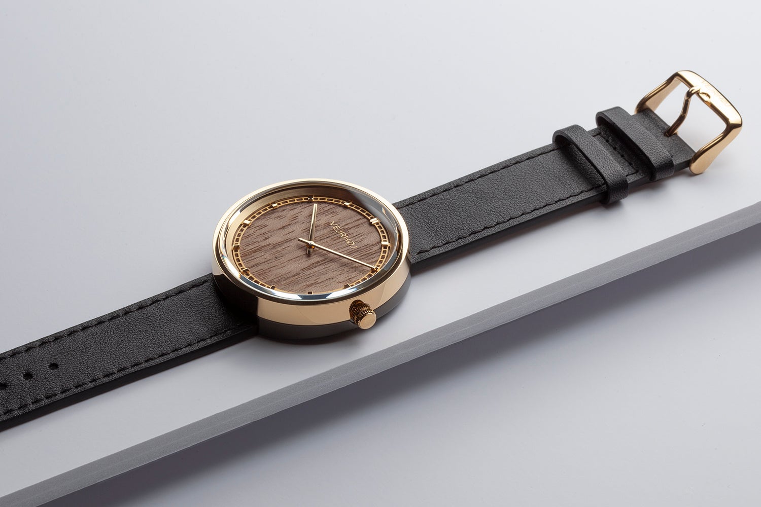 新作モデルの NORDIC | Gold は文字盤が天然クルミ材でできていることを特徴にしている。文字盤の木目は、人工素材では再現できない自然の質感と温もりを発します。