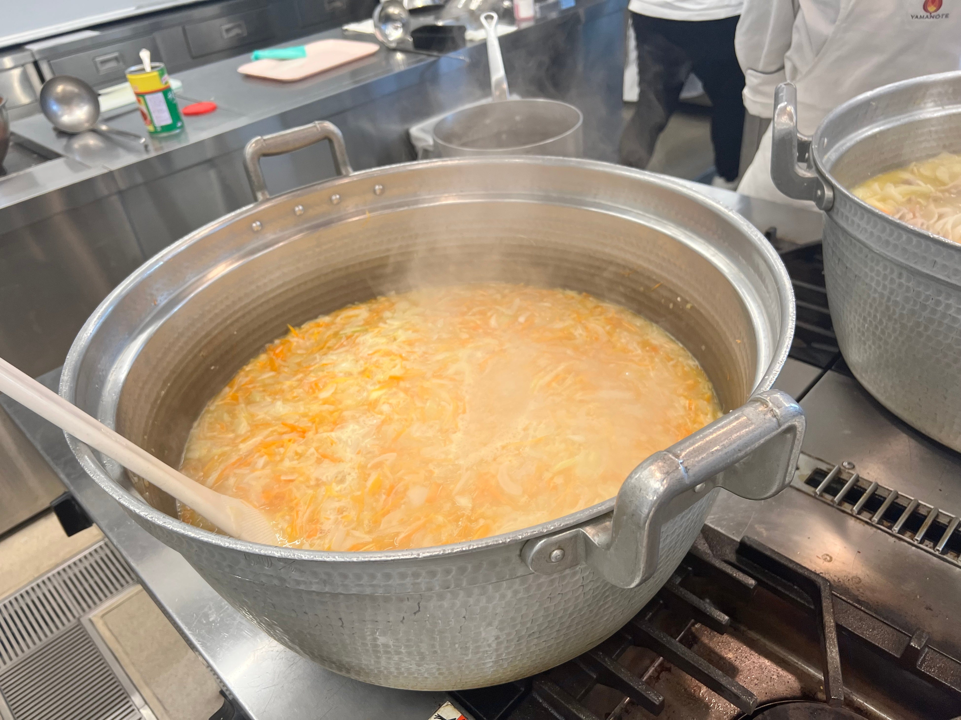 各班が日替わりで実習を行うので、調理師科の全員が大量に調理する技術を身につけていきます。