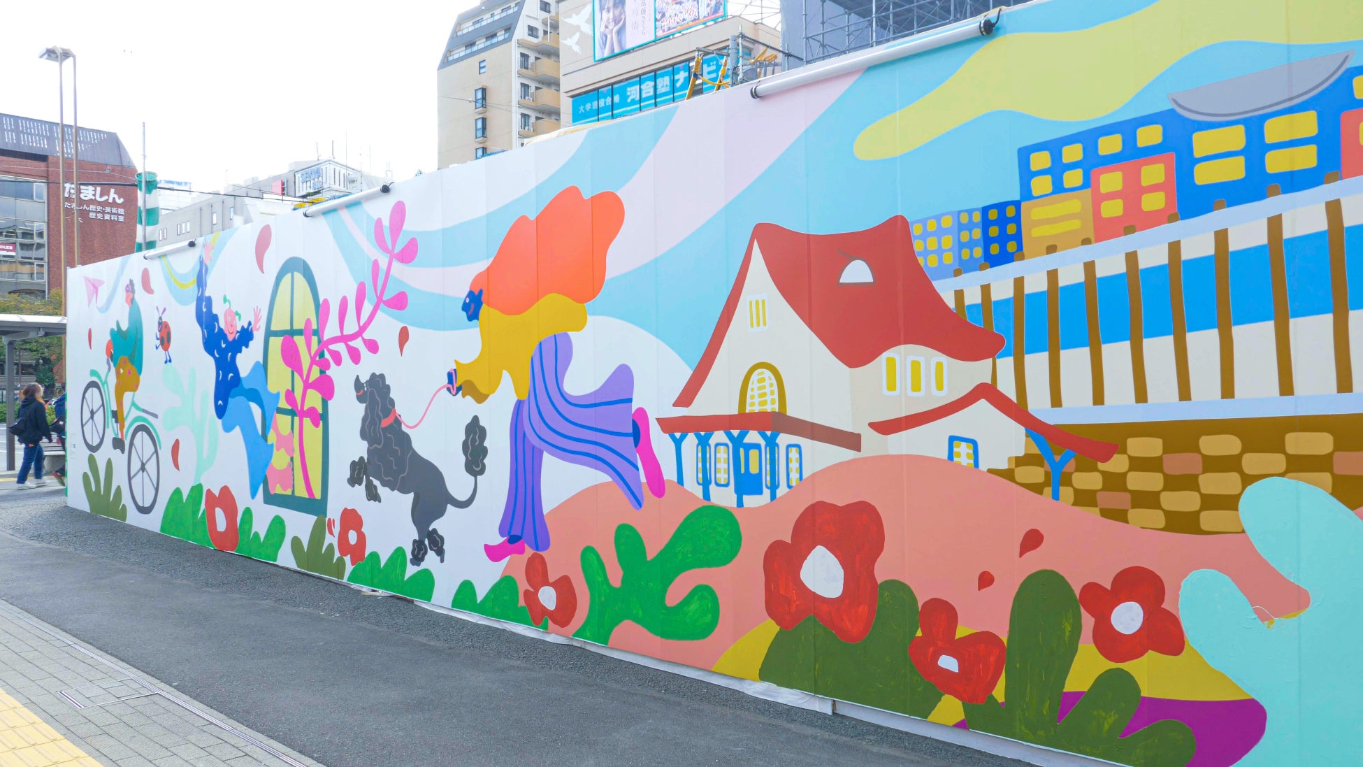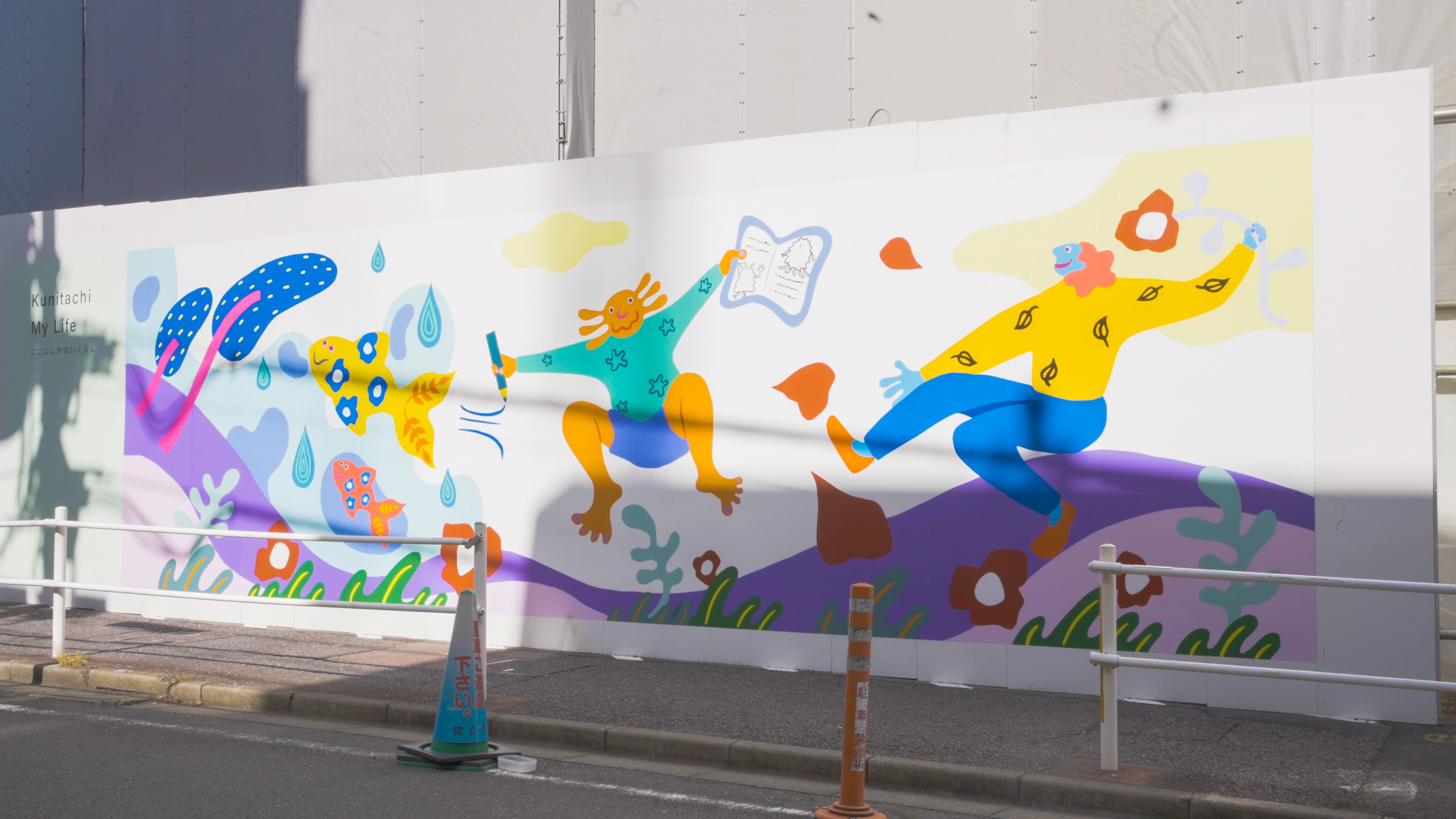【fence&art】国立駅南口駅前の仮囲いをキャンバスにアートワークショップを開催。アーティストと、こどもたちが一緒に制作した仮囲いアート「Kunitachi My Life」が登場。