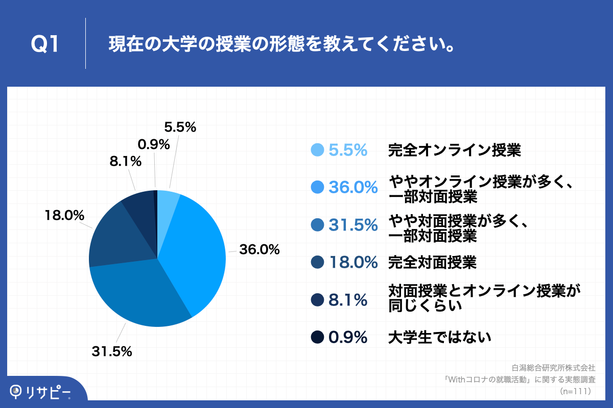 ・ややオンライン授業が多く、一部対面授業:36.0%