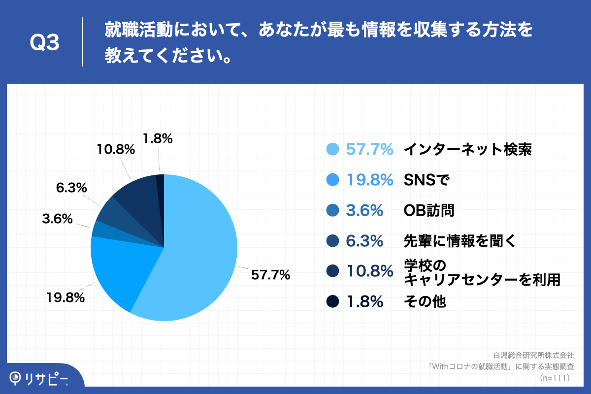 - 就職活動の情報収集、「インターネット検索」が57.7%で最多
