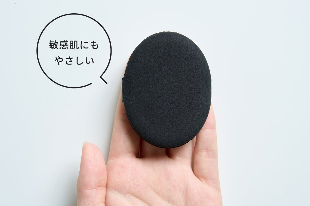 肌への刺激を最小限に抑えるため、ラテックスフリーにこだわりました。厚みのあるもちもちのパフは、ふんわりやさしい肌あたり。肌コンディションがゆらいだ時もメイクを快適にお楽しみいただけます。