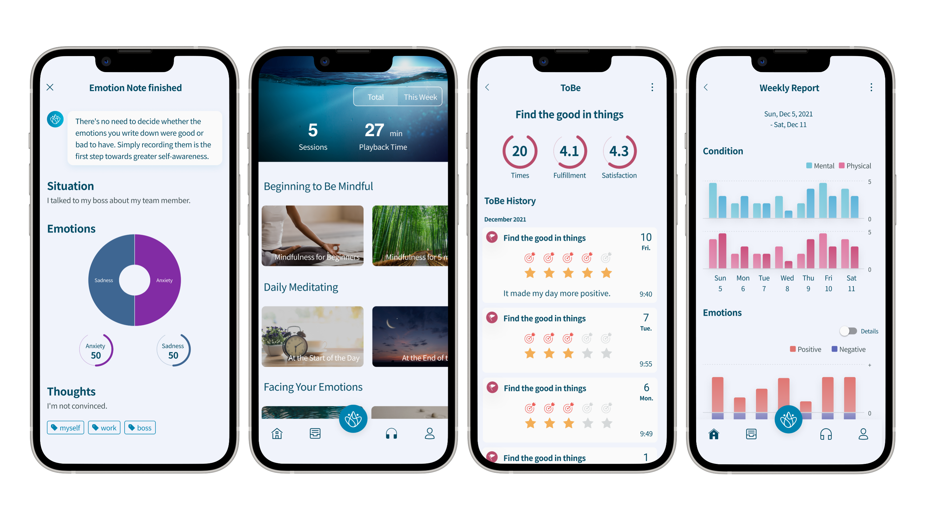 ・日々の感情やコンディションを記録し、自分の感情や状態を見える化