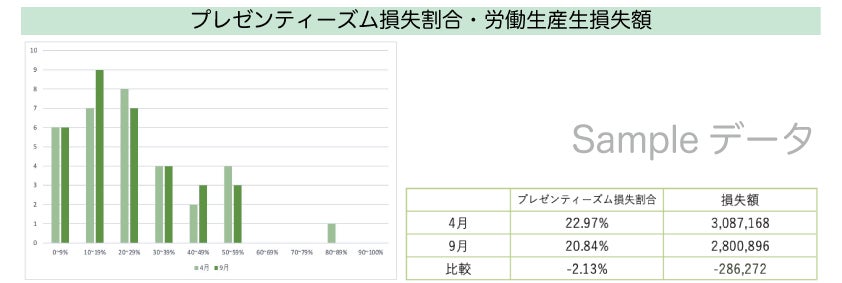 - 心身の不調が原因で生産性が低下している損失額を算出し、その削減効果を明確に提示。