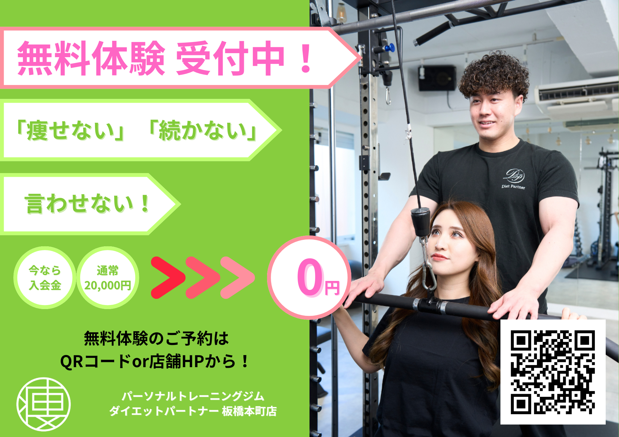 板橋本町に『安さ◎』『効果◎』『質◎』のパーソナルトレーニングジム「ダイエットパートナー 板橋本町店」がオープン。東京都板橋区で最高顧客満足度を目指します。初心者・女性に優しい環境を提供しております。