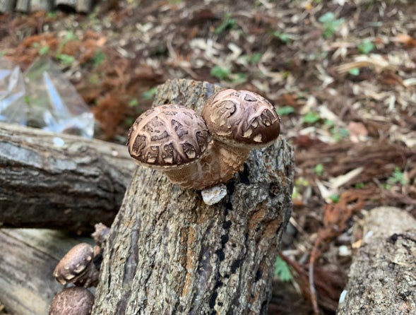 (地域のみんなで育んだ肉厚原木しいたけの収穫体験)