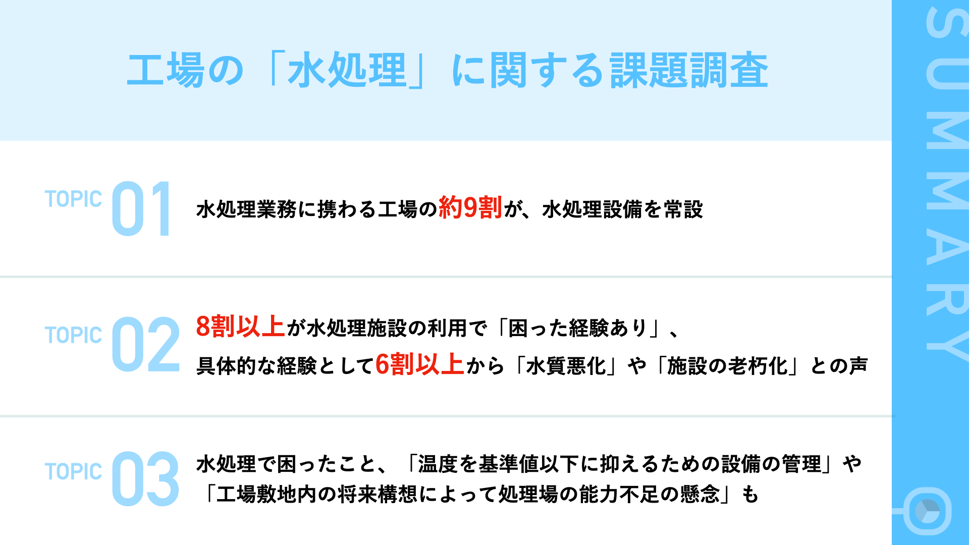 水処理施設を常設する工場は約9割 一方で8割超が「水処理に関して困った経験」あり
