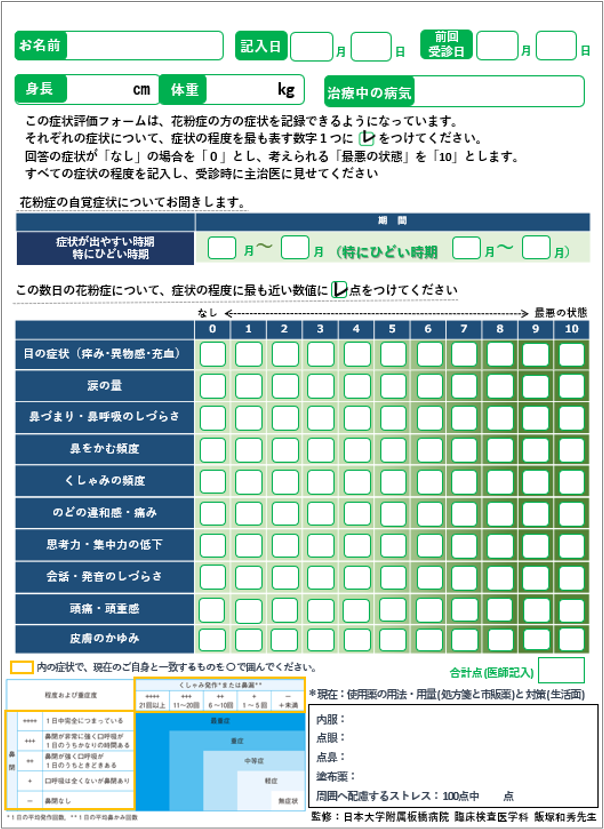 カルテック株式会社(本社:大阪市中央区、社長:染井潤一)は、医療法人社団伊豆七海会 熱海所記念病院の協力を得て、花粉症患者の男女11名が光触媒除菌脱臭機を顔下に装着し、装着時(初値)・1週間後・2週間後において当社が作成した自覚症状問診票を用いて、花粉症の自覚症状で最も近い状態を10段階で記入いただきました(数字が高いほど状態が悪い)。その結果、すべての花粉症患者において症状が改善する結果が得られました。これは、顔下の光触媒除菌脱臭機※1で花粉や菌などを除去したキレイな空気を放出することによって、被験者の体内に花粉を取り込まない効果とみています。自覚症状問診票は日本大学医学部臨床検査医学科飯塚和秀医師監修のもとで作成しました。