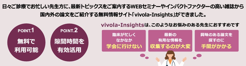 生殖医療実施登録機関の50%以上が登録する情報サイト「vivola-Insights」が、領域を広げて産婦人科版をスタート!産婦人科医全般へ最新情報を発信