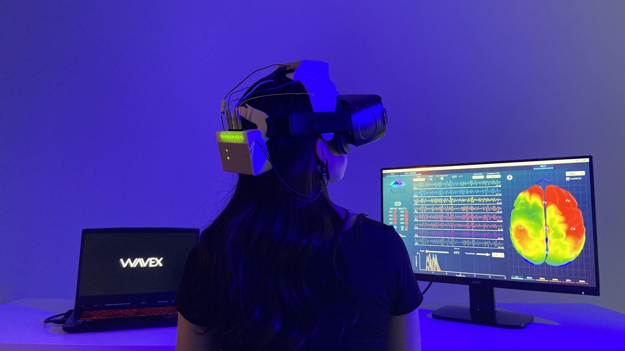 1) Wevex はEEGと既存のVRヘッドセットとを統合したプラットフォームであり、3Dビデオゲームやメタバースにおいて脳信号のモニタリングを可能にします。