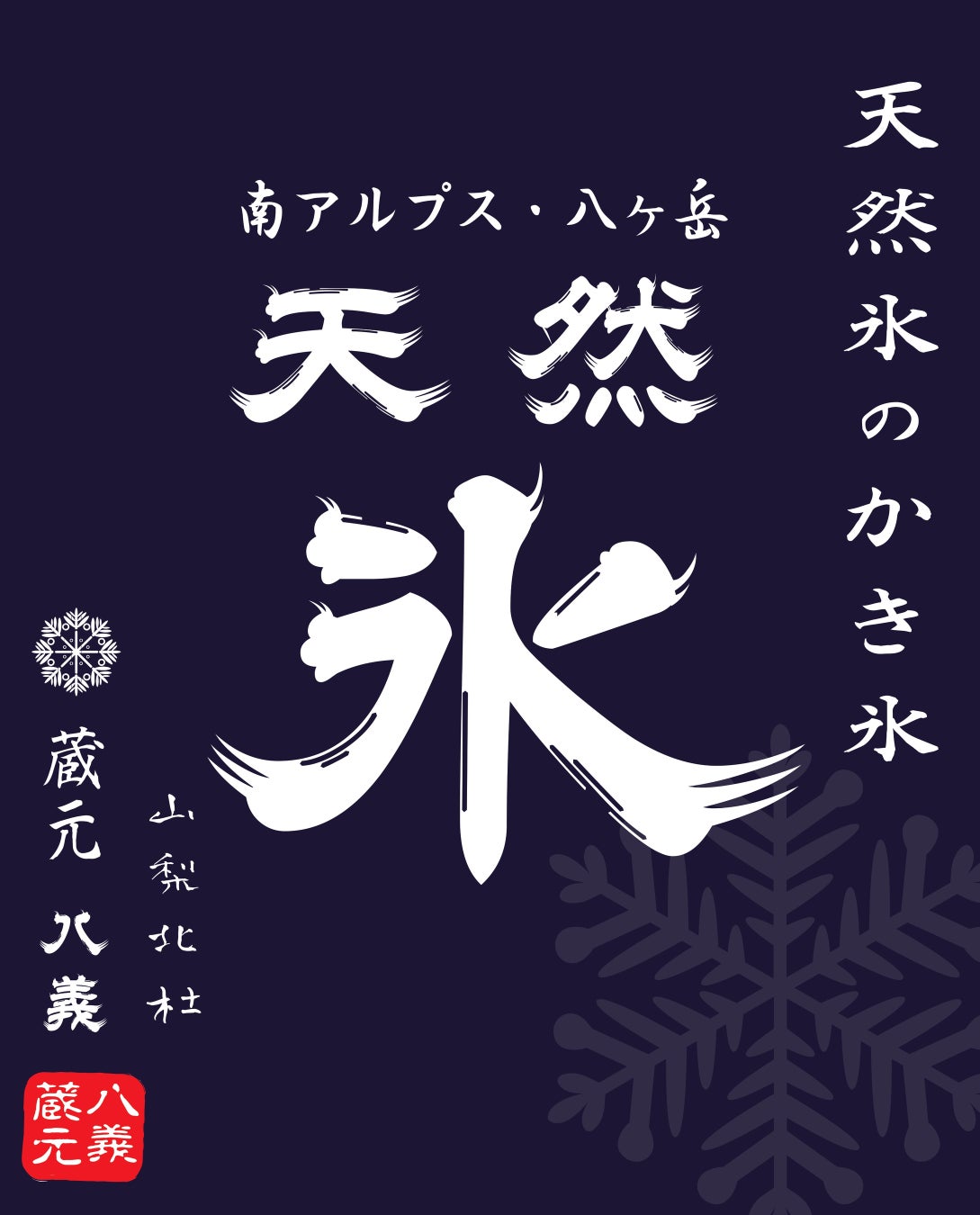 名水誇る水の山、標高1,300mの八ヶ岳南麓で厳冬の自然の寒さのみでじっくりと時間をかけて凍らせることで、不純物を含まない純度の高い氷となります。丁寧に時間をかけて作られた氷だからこそ、軽い口当たりのフワフワなかき氷に仕上がりました。