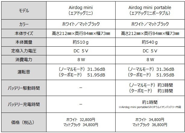 【Airdog miniシリーズ スペック】