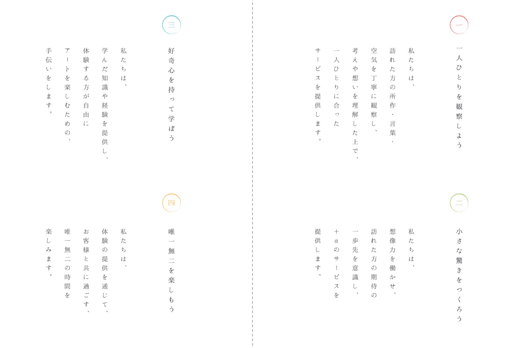 そこには「金沢茶寮」が目指す姿と、自分自身で接客のあり方を考えるための“4つの約束”が刻まれています。