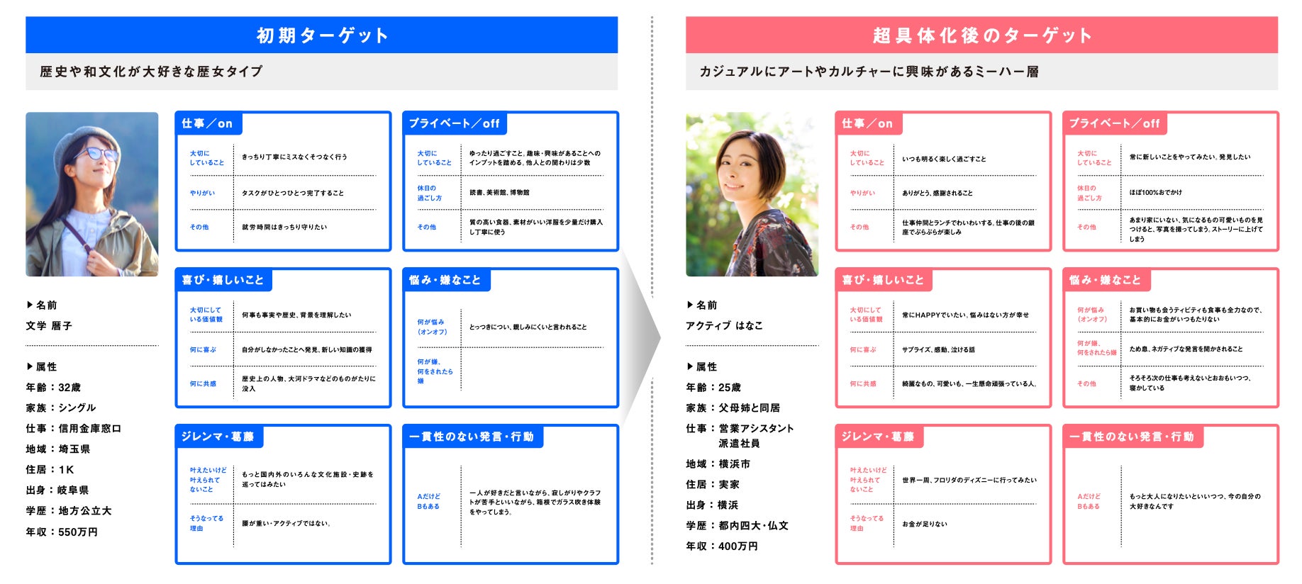 オープン当初のターゲットは、金沢という街を舞台にしているので歴史や和文化が大好きな層に設定。接客を経て解像度を上げることで、カジュアルにアートや文化に触れてみたいライト層(ある種のファション性、旅行に対するフットワークの軽さを重視)に変更しました。