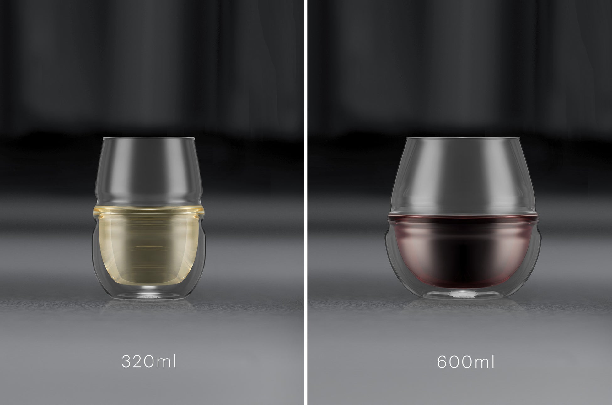 ダブルウォールアロマグラスは、ボウルに丸みを持たせ、リムをすぼめることにより、飲みものの香りをボウル内に閉じ込め長時間滞留させ、楽しむことができます。