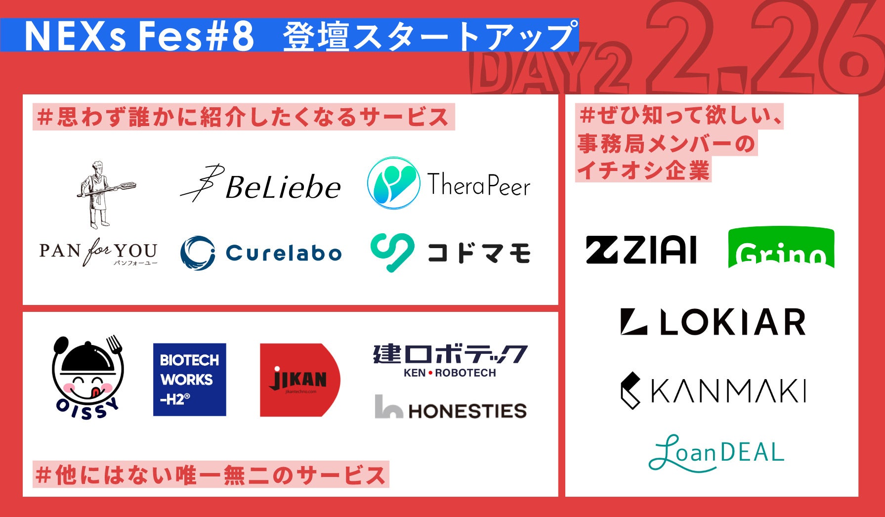 ====DAY2/登壇スタートアップ一覧====