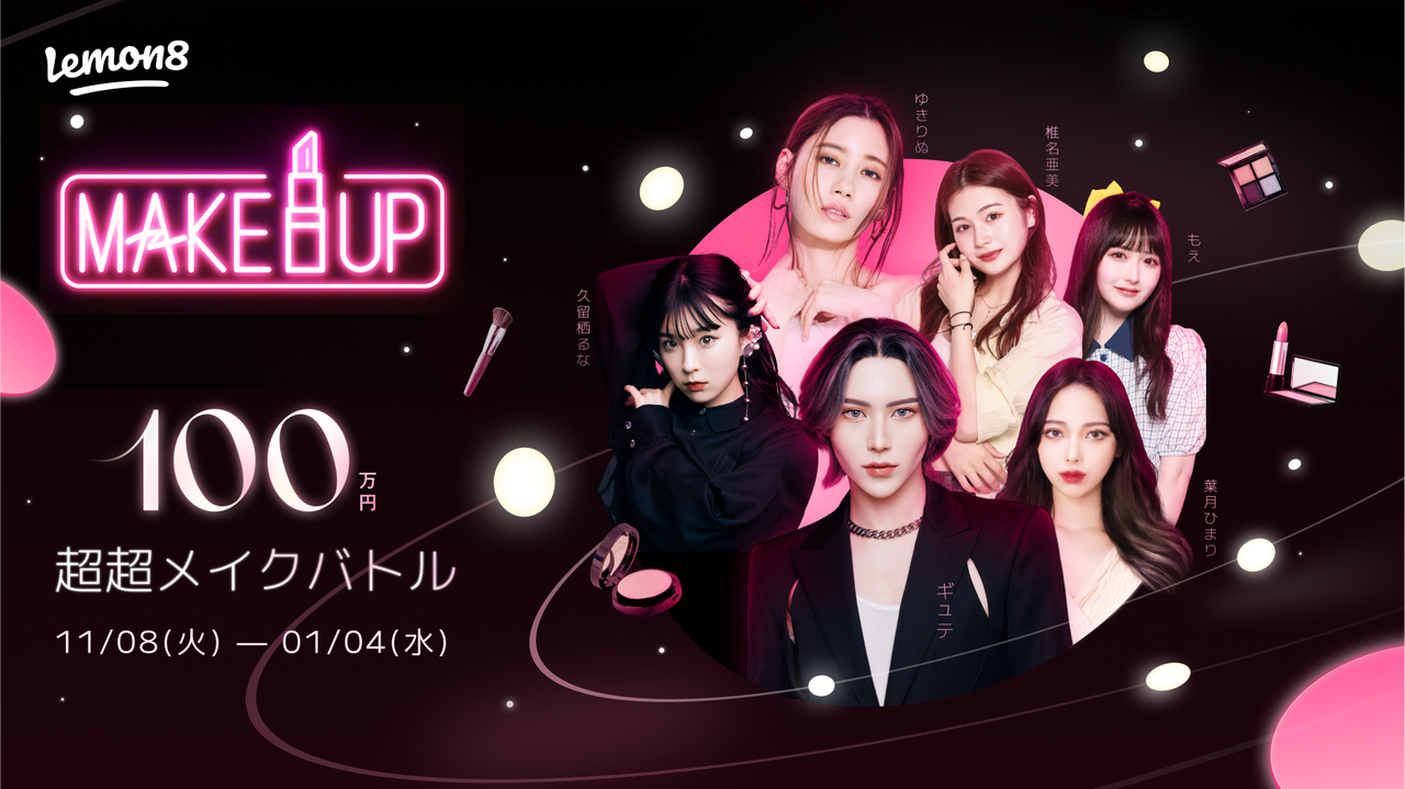毎日に、ハジける発見が出来るアプリ「 Lemon8(レモンエイト)」は、賞金100万円の超超メイクバトル「#Make1up」を開催しました!2022年11月8日(火)〜2023年1月4日(水)までの2ヶ月間で計5回メイクバトルを実施し、優勝賞金の100万円の争奪戦を行います!