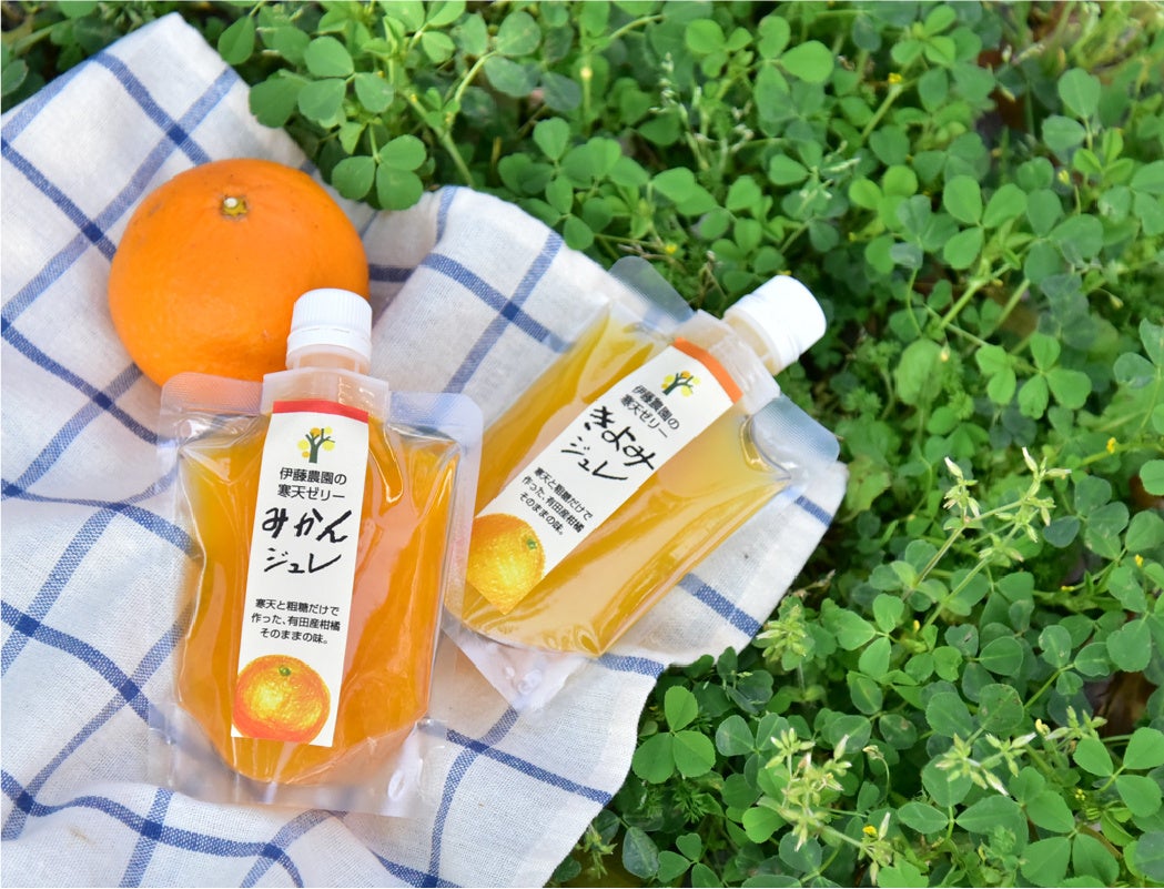 伊藤農園のジュレは「素材そのまま」「安心・安全」をお届けしたい思いから、使用しているのは和歌山産かんきつ、粗糖、寒天のみ。伊藤農園のこだわりの搾汁方法で搾った濃厚な果汁の味わいと寒天特有の口の中でとろけるような食感をお楽しみいただけます。