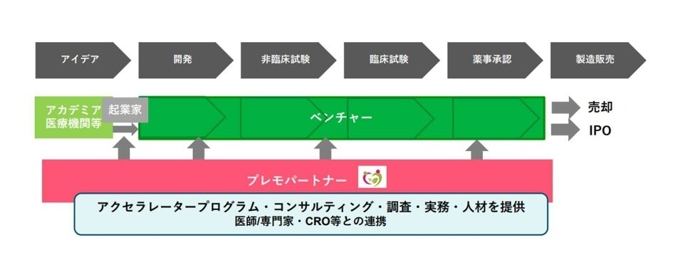 同社の桜井公美CEOは、「工学・医学・ビジネスという3要素が、間断なく実装化される仕組みが必要なのです」と力説する。プレモパートナーは、日本の実情に即した伴走・協調型インキュベーターなのである。
