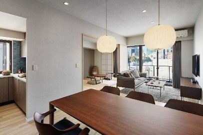全171室の客室は、木のぬくもりを感じられるエレガントな家具を配し、スタイリッシュでコンテンポラリーなデザインが調和した、まさに“自宅のように”寛げる空間となっております。全室にはIHコンロ、冷蔵庫、電子レンジ、炊飯器、調理器具と食器が完備されたフルキッチン、洗濯乾燥機、高品質なベッド、空気清浄機、55インチのスマートテレビ、無料Wi-Fiと最新設備が備わっております。客室は、スタジオから1ベッドルーム、2ベッドルーム、3ベッドルームまでの4種類をご用意。畳を取り入れた「和洋室タイプ」もあり、単身でのご出張やカップルでのご利用はもちろん、ご家族やご友人とのグループ旅行など、お客様の多様なご要望にお応えいたします。全客室に開放的なバルコニーが配され、刻々と移りゆく東京の景色をお楽しみいただけます。客室のアメニティには、イタリアの自然派ブランド「コンフォートゾーン」を導入し、ラグジュアリーな香りとツヤのある質感で、1日の疲れを癒してくれます。さらに、持続可能な開発目標(SDGs)の達成に向けた取り組みとし、ミネラルウォーターはリサイクル可能なアルミ缶を採用。ボールペンは軸の周りを再生紙でくるんだペーパーボールペン、制作物には非木材である竹パルプを配合した環境に優しいファインペーパー竹はだ等を使用し、インクも環境への影響が少ない原料を使ったしたインクを採用しております。