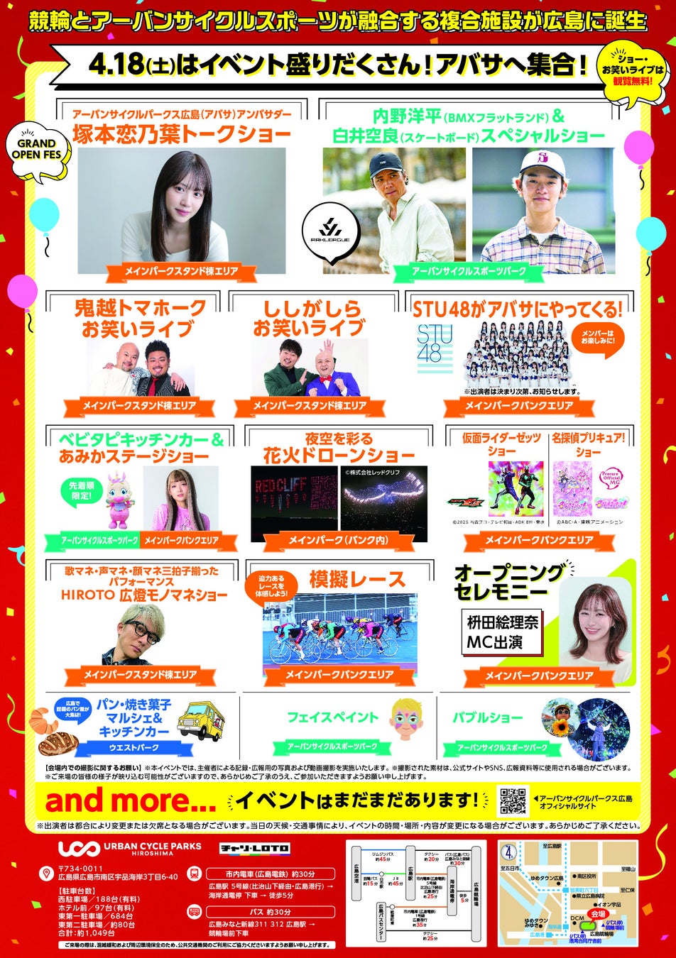 宇品地域の新たなランドマークである「アーバンサイクルパークス広島」のグランドオープンを記念して、オープニングセレモニーを開催します。