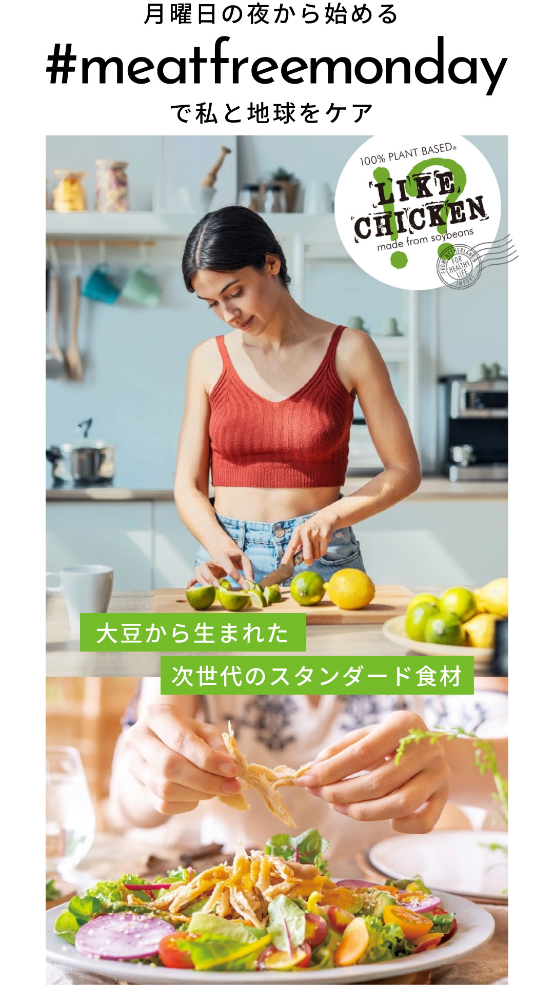 カラダと地球の健康を考えるプラントベースな新習慣「#meatfreemonday(ミートフリーマンデー)」を、食べ応えのあるソイチキン「LIKE CHICKEN(ライクチキン)」で提案開始