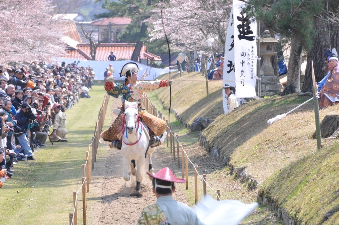 桜舞う中の伝統と歴史の 「流鏑馬神事」