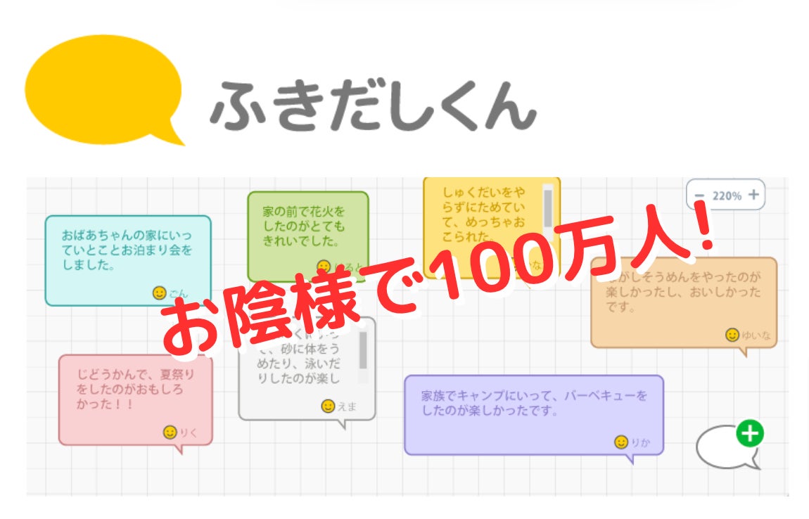 株式会社ティーファブワークス(本社:千葉県柏市 代表取締役:高松 基広)が2023年7月に提供を開始した学校向けの付箋ツール『ふきだしくん』 https://477.jp が、1年4ヶ月で100万人(ユニークユーザー)を超えました。教育現場でのICT活用が進む中、『ふきだしくん』は生徒の意見を可視化し、主体的な学びを促進するツールとして多くの先生方に支持されています。