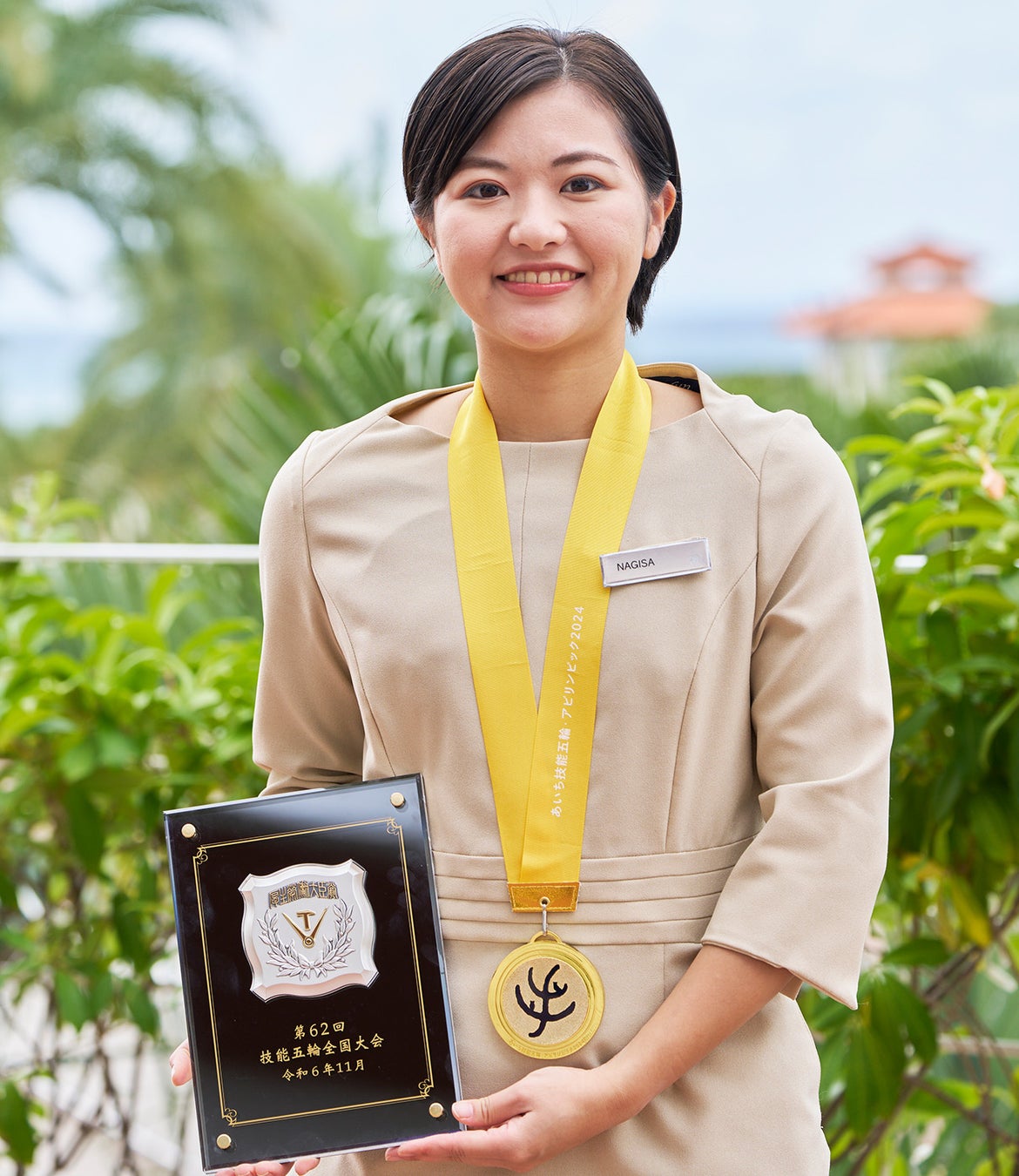 【ヒルトン沖縄北谷リゾート】料理飲料部 新里凪咲(しんざとなぎさ)第62回技能五輪全国大会の「レストランサービス」職種で金賞・厚生労働大臣賞を受賞