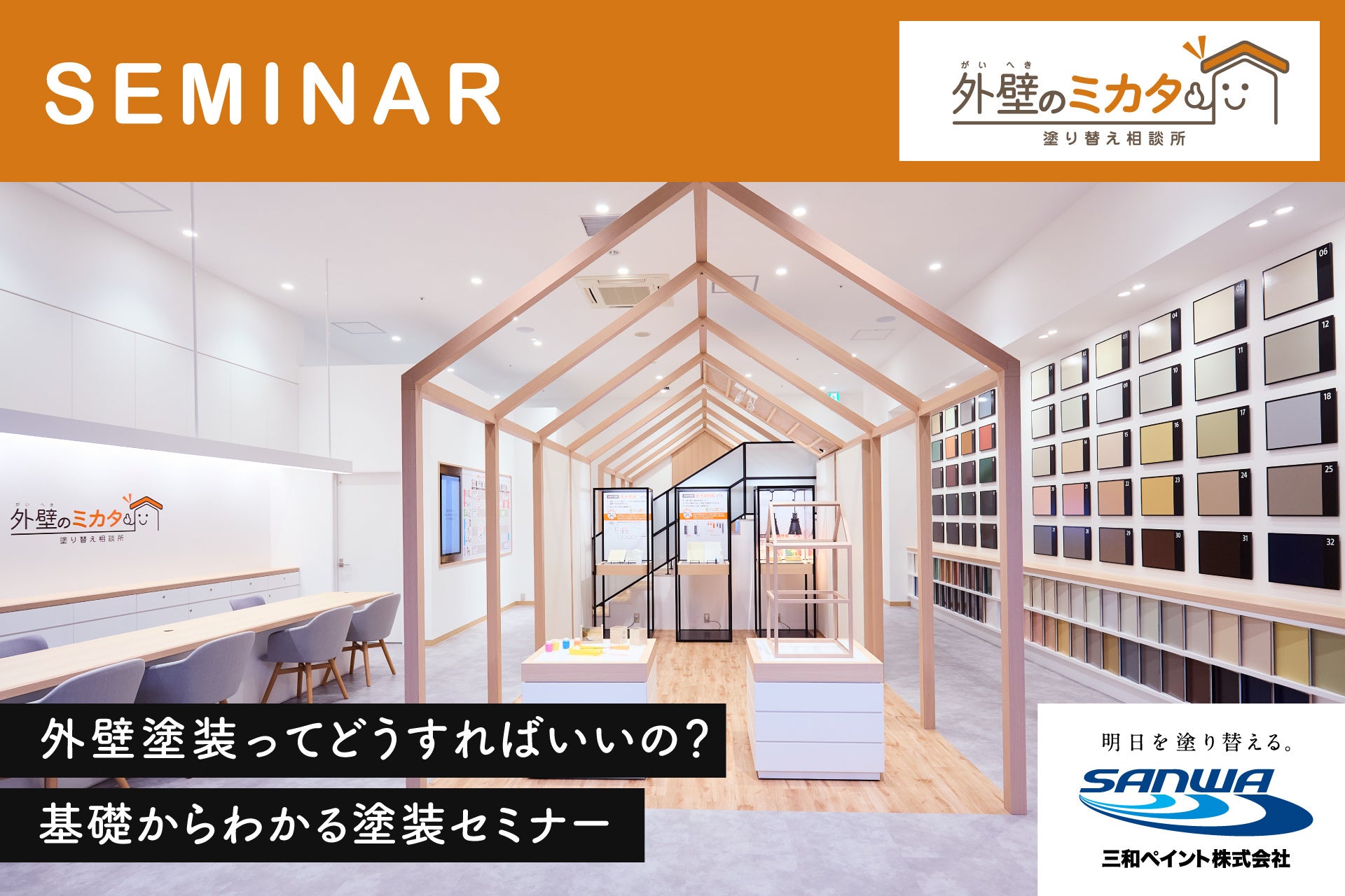 外壁・屋根塗装のリフォーム・リノベーションを専門とする三和ペイント株式会社(本社所在地:大阪府大阪市、代表取締役社長:木原 史貴、以下 三和ペイント)が運営する『外壁のミカタ』(ららぽーと和泉:大阪府和泉市)では外壁塗装に関連するさまざまなお悩みに対応したセミナーを定期的に開催しています。