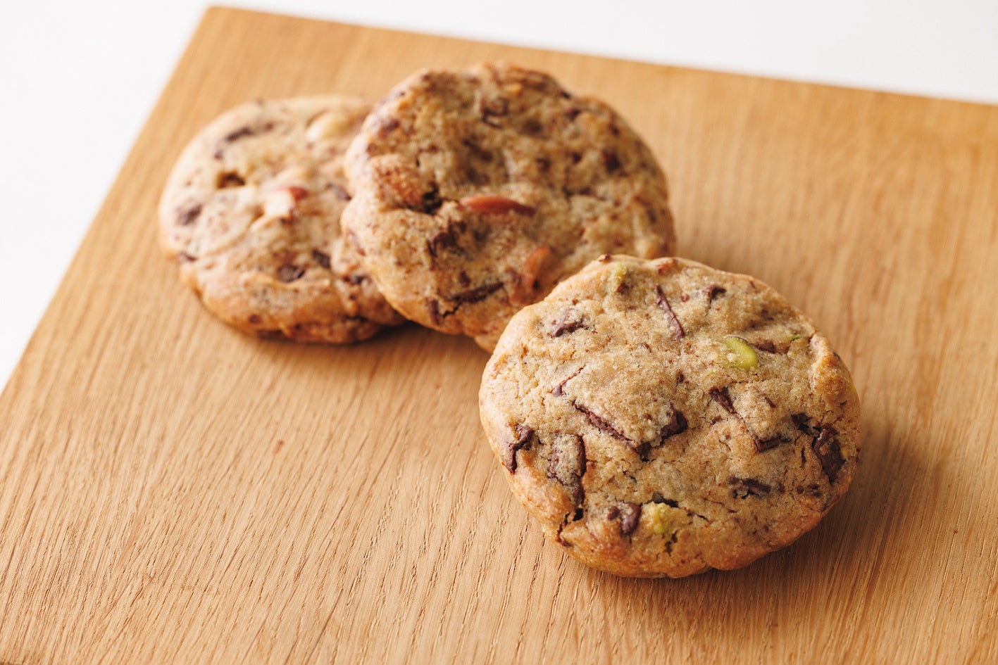 過去のポップアップストアにて1日1,500枚を売り上げたことのあるこのクッキーは、焼き立ての芳醇な香りに引き寄せられること間違いなしのしっとり柔らかい食感が特徴です。3つの産地別カカオ(マダガスカル・ジャワ・ペルー)のショコラとナッツがたっぷり入った3タイプで、毎日2回(10時・14時頃)焼き立てを販売します。是非出来立ての美味しさをご堪能ください。